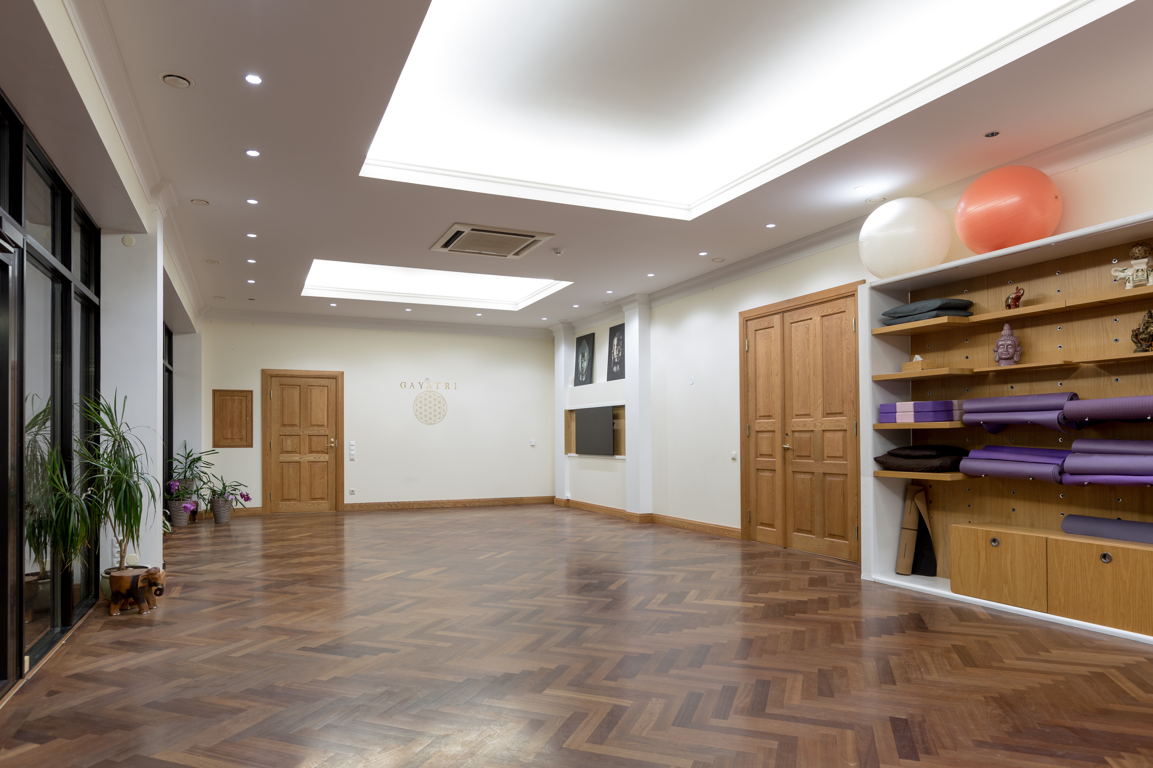 - оборудование для йоги: коврики, кирпичи, болстеры, ремни, пледы;